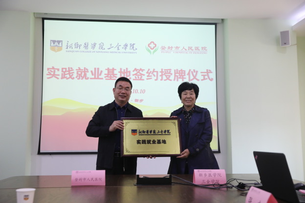 接着,毛兰芝向两家医院代表授予“新乡医学院三全学院实践就业基地”牌匾,仪式在和谐融洽的气氛中圆满结束。