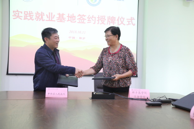 最后,杜华贞与两家医院代表签订了《新乡医学院三全学院实践就业基地协议书》。