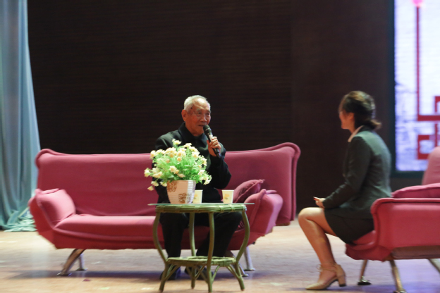 在“国学有约”访谈环节,主持人对颜教授进行了采访,当问到对青年学子的寄语时,94岁高龄、义务传授国学经典三十年如一日的颜景松教授勉励广大青年学生:“要保持对国学经典的学习热情,树立民族文化自信,担负起家国使命,学以致用,做好新时代的接班人”,现场同学们报以热烈的掌声。