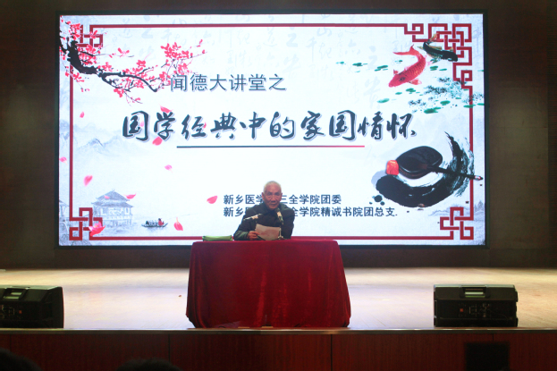 在“闻德讲堂”讲座环节,颜景松教授做“国学经典中的家国情怀”讲座。他从核心价值观、国学经典、家国情怀三个方面为大家讲述了青年学子在当前应具备的核心素养。首先,他讲述了核心价值观与国学的紧密联系;随后从《孟子》、《礼记·大同篇》等国学经典著作中颜景松教授将国学经典中所蕴含的家国情怀一一讲解,他说道,“天下之本在国,国之本在家,”“大道之行也,天下为公,选贤与能,讲信修睦”,国学经典是国家和民族的灵魂,凝聚着中华民族的智慧,彰显着中华民族的精神,家国情怀是实现民族复兴的内生动力,是优秀传统文化的宝贵财富。