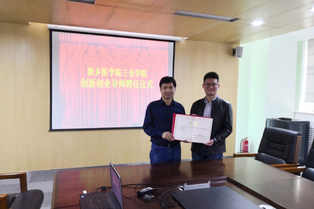 讲座开始前,学校在行政楼第三会议室举行李强博士的创新创业导师聘任仪式,我校副院长王彦杰出席,学务部就业创业指导服务中心、羲和书院的部门负责人参加。
