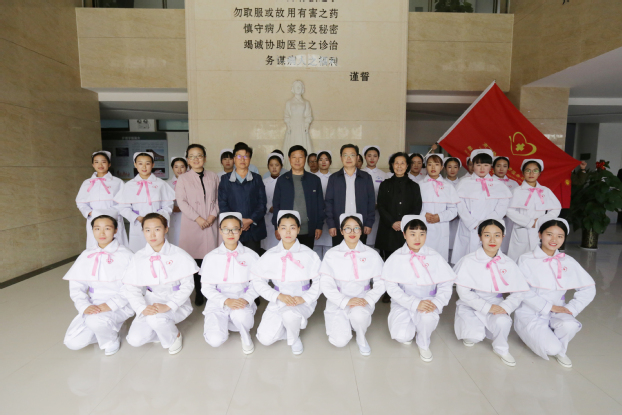 10月25日中午,我校护理学院南丁格尔志愿服务队成立仪式在护理实践教学中心一楼大厅举行。我校党委书记王志凯、党委副书记王金文、教务长杜华贞出席,护理学院的部门负责人、南丁格尔志愿服务队全体成员参加。
