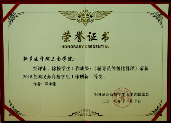 11月9日至10日,第七届全国民办高校学生工作创新研讨会在长沙举行。我校学生工作成果《辅导员等级化管理》荣获2018全国民办高校学生工作创新“二等奖”,学校学务长邱永建受邀参会并作《深化学工体系改革,实行辅导员等级化管理》报告。