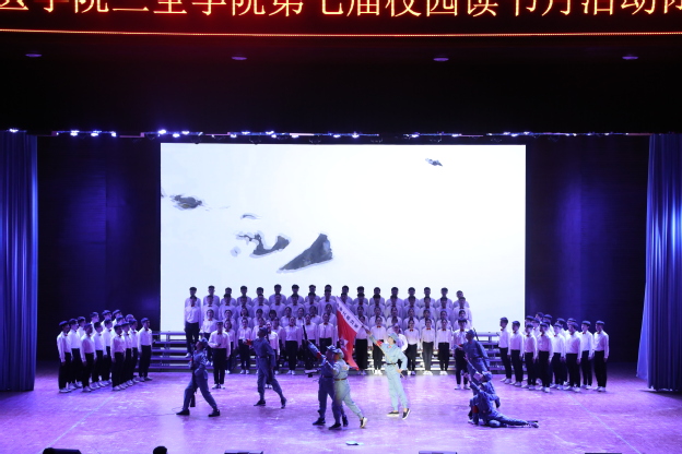 闭幕式期间举行了以“不忘初心跟党走,激情拥抱新时代”为主题的百人诵读比赛,比赛邀请到图书馆馆长华玉民、党委办公室主任吕莎、思想政治理论课教学部教学副主任兼副书记申家字、医学工程学院党总支副书记兼副院长陈继超、团委老师史良担任评委。