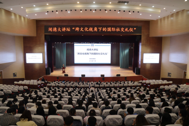 11月16日下午,在我校闻德礼堂,曹德春教授为广大学生做了一场题为《跨文化视角下的国际社交礼仪》的报告,报告由团委书记马素娟主持,800余名学生参与。曹德春教授首先从中外文化差异如何甄别和如何衡量入手,接着曹德春以自身三十年的涉外经历向同学们介绍了国际社交礼仪,涵盖了国际交往中的文化风险、对待宗教的态度、不同的民族性格及时间观念等,这些分享与介绍大大开拓和丰富了在场学生的国际化视野。2018级英语专业学生李丹萍说道:“曹教授的分享,不仅为我们跟国际学生的交往给与了指导和建议,使我们更加自信的与他们相处,同时曹教授分享的内容对我们英语专业后续的职业发展也提供了宝贵的经验”。