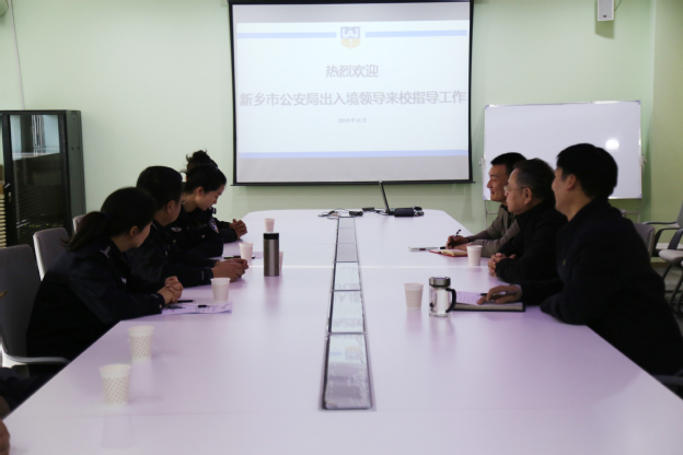 11月21日下午,新乡市公安局出入境管理大队大队长王来成一行6人来我校指导工作,我校院长杨捷、副院长王彦杰出席座谈,外事部相关负责人员参加。