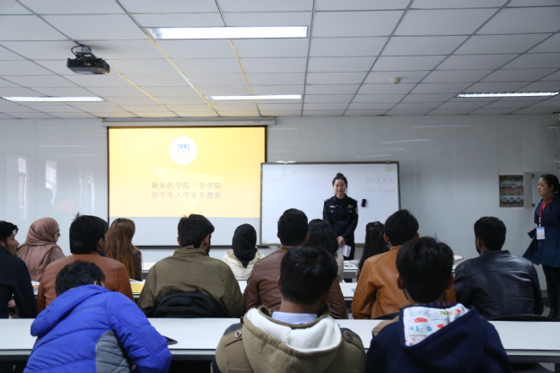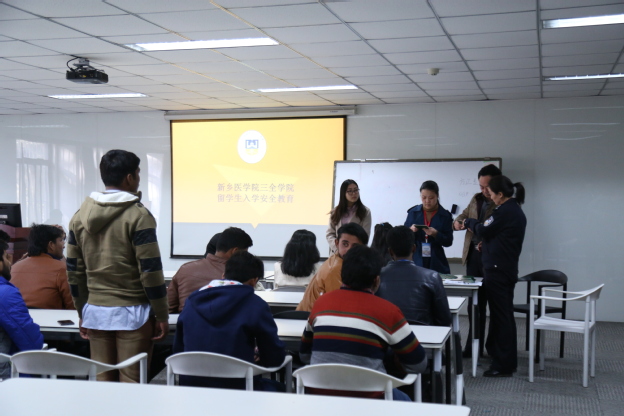 随后,詹彩虹警官、祝楼乡派出所邓国红副所长前往教学楼C101教室亲自核验国际学生相关证件。詹彩虹对首批国际学生开展了出入境法律法规教育;并就国际学生的相关管理规定、国际学生的信息统计、手续办理和日常管理等四个方面对我校涉外管理干部给予了培训指导。