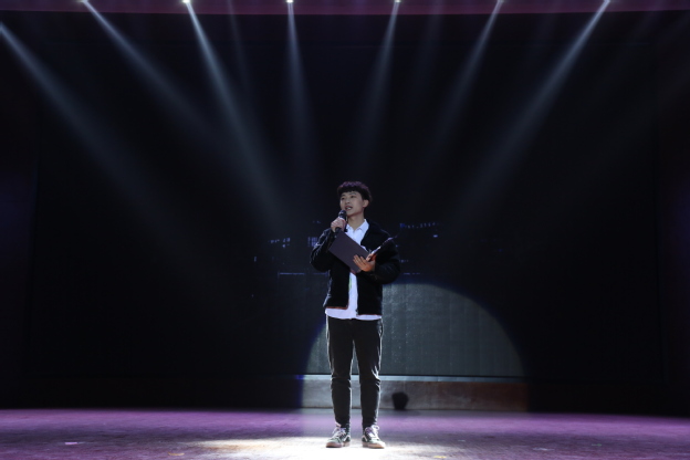 经过初赛、复赛层层选拔,共有十名选手入围决赛,决赛分为“美好三全你我记录”与“家国情怀你我共谱”两个环节。在第一环节中,朗诵的作品均来自征文比赛所征集的优秀原创诗文,一号选手卢先运以一首深情并茂的《从你的全世界路过》拉开了比赛的序幕,别出心裁的出场方式让观众眼前一亮;七号选手杨淑雯的《不悔梦归处》,背景中的校园美景图展示出了三全春日的绿意盎然、仲夏的湖光潋滟、深秋的层林尽染与寒冬的银装素裹,配合直击心灵的文字更是让台下观众沉醉不已;九号选手杨智凯诵读的作品《嘿!你好,我的全世界》,文章带领大家回到初入三全时的青葱模样,结尾最后一句“嘿!你好,我的全世界”更是让人回味无穷。选手们的表演精彩纷呈,饱含的激情感染着每一位观众,引起同学们阵阵赞叹。