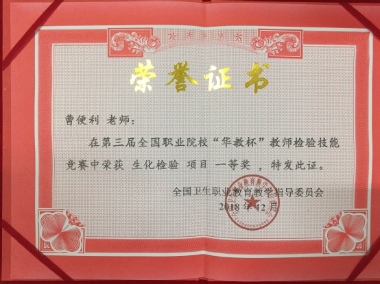 本次竞赛是对参赛教师职业综合能力和素养的考核,也是对教师教学能力及教学水平的考核,通过竞赛规范了教师的检验技能,提高了专业教学水平,达到了“以赛促教、以赛促学、以赛促改、以赛促升”的效果。一直以来,学校积极选派教师与学生参加各级各类技能大赛,推动产教融合、深化校企合作,不断提高临床检验综合能力。同时对我校医学检验技术品牌专业建设起到很好的支撑作用。