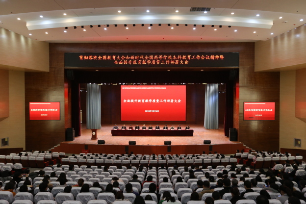 为贯彻落实全国教育大会精神和新时代全国高等学校本科教育工作会议精神,2018年12月4日下午,我校全面提升教育教学质量工作部署大会在闻德礼堂隆重召开。我校领导王志凯、杨捷、王金文、王彦杰、张钢、沈雁霞、毛兰芝、杜华贞、马波、王延生出席会议。会议由教务部主任袁磊主持。