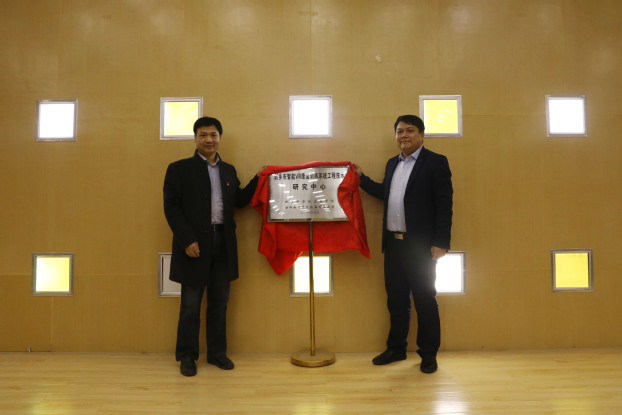 在一百余名师生见证下,王彦杰、王亮为“新乡市智能VR康复训练系统工程技术研究中心”揭牌。