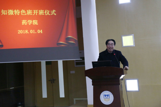 据悉,首届“知微药学特色班”是由学生自愿报名,通过筛选、面试的方式产生,由18级药学、药剂本科专业等共计28名同学组成。该班旨在培养具有比较系统的药学学科基础理论、基本知识和基本技能,能够从事药物研究与开发、药物生产与管理、药物质量控制、临床合理用药、医药经营及管理等方面工作的专门技术人才;是在原四年制药学、药物制剂专业的三年半理论知识加半年实习学习的基础上,变更为三年理论知识加一年实习学习,保证在理论知识掌握的前提下,增加实习时间,加强学生科研实践能力。