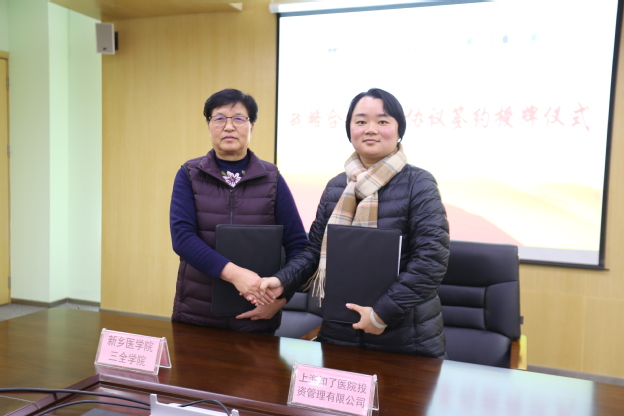 接下来,杜华贞与陈珍峰签订了《新乡医学院三全学院与上海知了医院投资管理有限公司战略合作框架协议》。