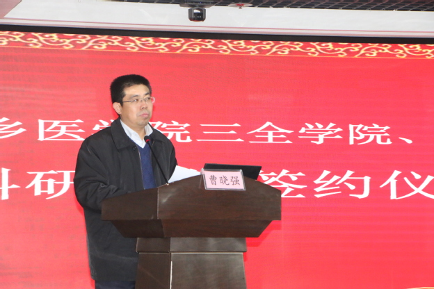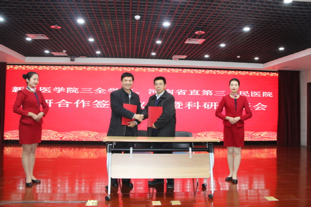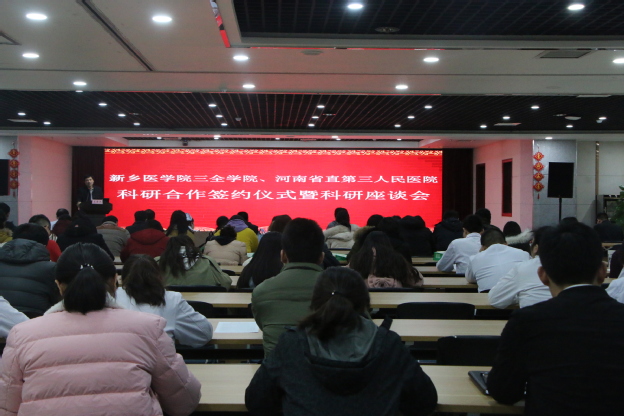 1月15日下午,我校与河南省直第三人民医院科研合作签约仪式暨科研座谈会在河南省直第三人民医院东院区举行。河南省直第三人民医院院长曹晓强、副院长袁启东,我校副院长王彦杰出席,我校科研部和相关院系科研项目负责人员参加。