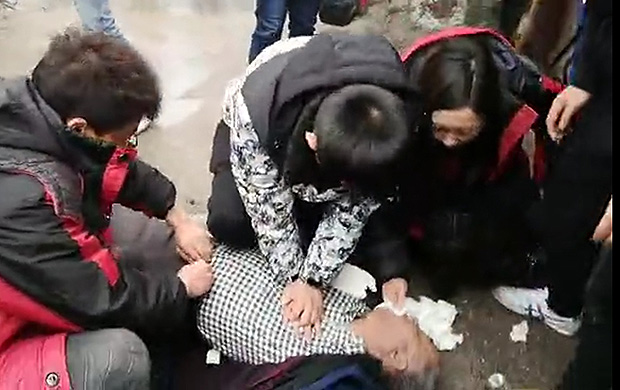 “我是医生,我爱人是护士!”3月14日下午,正在休假的新乡医学院第一附属医院郭升医生陪同父母及爱人游览四川峨眉山景区,在下山途中遇见前方有一个老人倒在地上,众人围在其身边进行急救。郭升医生见状迅速跑去,通过查看病人,发现患者颈动脉搏动消失,双侧瞳孔散大,面色青紫,郭升医生跪在地上为患者进行胸外心脏按压,他的爱人则为患者清除口腔内呕吐物,患者的呕吐物溅了郭升医生和他爱人一身,但是他们完全没有受到干扰,整个抢救过程持续了10多分钟。随后景区医生赶到现场并将病人转送至急救车上,郭升医生及家人才默默离开。