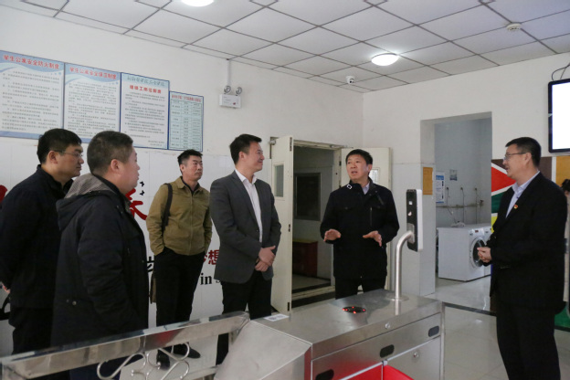 汇报会后,考核组还通过查阅相关资料,并对校园物防、技防设施、安保装备配置情况和监控中心进行了实地查看。