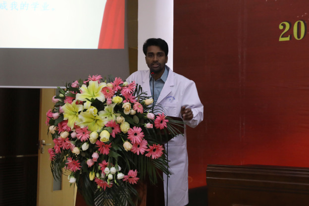 接下来,2018级国际学生代表Abdul Rehman发言。他表达了对学校的喜爱和对未来的期待,向所有辛勤培育国际学生的老师、热心帮助国际学生的中国同学表示衷心感谢,并与大家分享了入学来的学习经验。