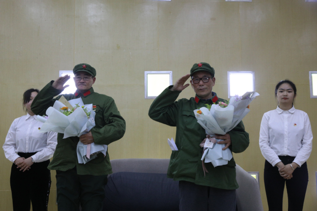 故事分享结束后,现场的学生代表以书信的形式告白革命老兵,他们在信中表示,革命老一辈是我们时代的“偶像”,我们要向他们告白,他们的精神让我们感动,更让我们受到鞭策,我们要珍惜来之不易的幸福生活,继承和发扬革命传统,以奋发有为的精神投入到学习和生活中。一名学生在现场表白:“正是你们,扛起了祖国繁荣昌盛的大旗,正是你们,我们才能安心地在明净的教室里学习。正是看到了你们的这份努力,作为医学生的我,才懂得和平的来之不易,生命的诚之可贵。正是因为懂得,所以愈加珍惜当下的生活。作为一名医学生,我志愿献身医学,热爱祖国,忠于人民,恪守医德,尊师守纪,刻苦钻研,孜孜不倦,精益求精,全面发展。”听到学生们的表白,两位革命老兵露出了欣慰的笑容。