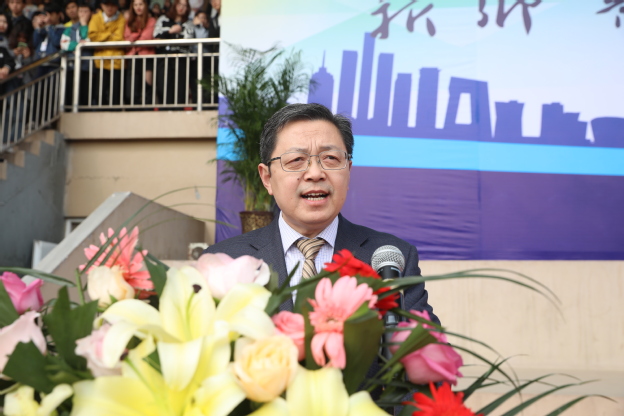 首先,王金文致开幕辞。他代表本届运动会组委会向尽心筹备运动会的全体师生表示衷心的感谢,他号召大家秉持着“安全第一,友谊第一,比赛第二”的思想,遵守规则,服从裁判,团结协作,顽强拼搏,赛出水平,赛出风格,并预祝全体运动员取得优异的成绩,本届运动会取得圆满成功。