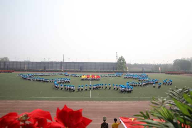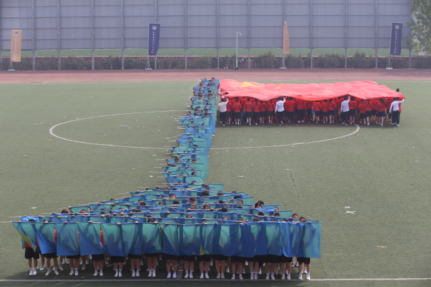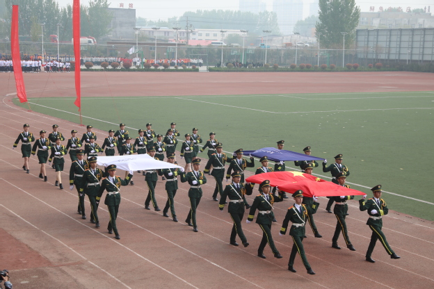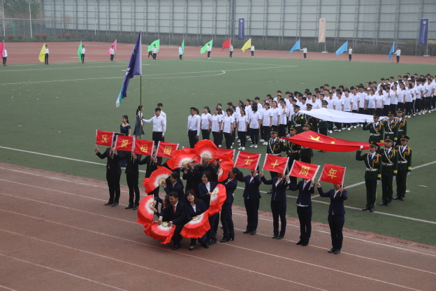 庄严肃穆的国歌响起,全体肃立,行注目礼,奏唱国歌,运动会正式拉开序幕。
