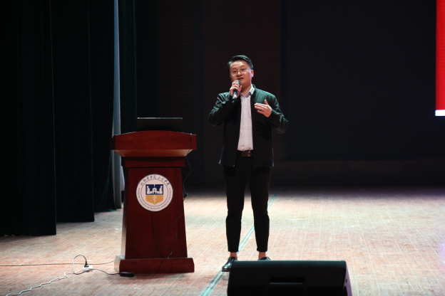 在“榜样力量,燎原之势”环节,从卫校到大专,从新乡医学院三全学院本科到德国慕尼黑大学博士,韩永晟与在场同学分享了他的留学经历,他说,因为中国的强大,中国人在国外,有足够的安全感强大,中国给予了他自信和力量。除此之外,他还向大家讲解了出国留学需要做的准备并勉励大家在学校珍惜时间,学好专业知识和技能,争取日后出国深造后回来报效祖国;作为一名恪尽职守的医者、豫剧的唐派传承者、唐派挑战“世界吉尼斯”记录的参与者,因为热爱让他坚持并行,因为热血让他追求卓越,他是有着中国底色的青年才俊殷宋词,他用自己的故事诠释了如何做一名有底线、有价值的医生。他说,“学医,并不是为了能够治好多少病,而是要将疾病预防工作做到最好”;面对倒地老人,因为医学生的信仰,全身每一处细胞都告诉他不能放弃,20次的心肺复苏,540秒的坚持按压,在第九分钟时抢救回患者的自主呼吸,刘军杰用自己坚持不懈的精神从死神手里夺回一条生命,医学生的信念让他时刻牢记:每一条生命的宝贵,每一次新生的喜悦,“仁术,任心,厚德载医”这是刘军杰打出的青春名片。