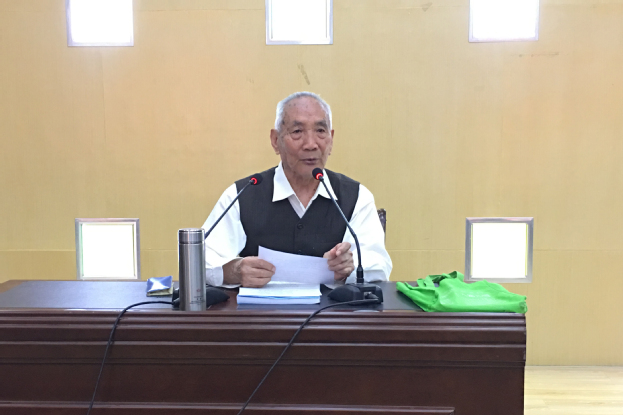 5月20日上午,河南省青少年德育宣讲团成员、新乡市教育系统传统文化教育首席专家、新乡学院95岁高龄的颜景松教授在行政楼第三报告厅做“落实立德树人根本任务——如何做一名合格的人民教师”专题讲座。基础医学院党政负责人及百余名教师聆听讲座。