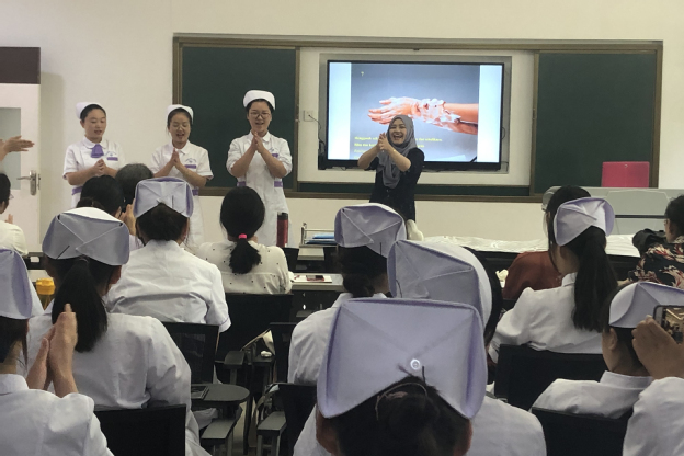 在护理学院,NORAZILA开展了示范性授课并参加座谈会。首先,NORAZILA以《院内感染》为主题,进行示范性授课。护理学院教师及学生共计50余人参加课程。NORAZILA围绕着标准预防的概念、措施、隔离的种类和方法等内容进行了分享。NORAZLIA在授课过程中采用多种方法互动,积极引导学生参与到教学中,课堂气氛活跃。在行政楼第二会议室,NORAZILA参加了Nursing Education Workshop。教师们围绕着护理专业课程设置和教学方法等内容进行了深入的探讨和交流。大家纷纷表示获益匪浅。护理学院副院长王静表示,NORAZILA的示范性授课及专业教育的分享,拓宽了教师们的视野和思路,促进了我校专业教育国际化向纵深发展。