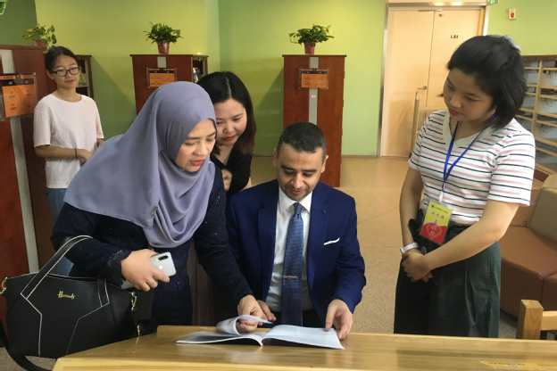 随后,NORAZILA和OSAMA在外事部工作人员的陪同下参观了我校图书馆。志愿者流利的英文讲解、图书馆优良的设施环境均给来访人员留下了深刻印象。随后,NORAZILA一行分别参加了由相关院系组织的交流活动。