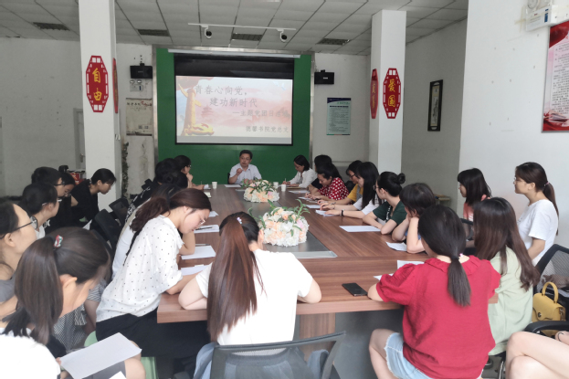 金靖芝首先介绍了书院党总支关于“青春心向党 建功新时代主题党团日活动开展情况。如:纪念五四运动100周年暨建国70周年华诞图片展、循五四火红足迹、踏奉献自我征程乐在我心中、跑进新时代等活动,丰富多彩、形式多样、富有特色的主题党团日活动给书院全体师生带来了一场场别出生面的创意盛宴、精神盛宴,引起师生热烈反响和广泛共鸣。
