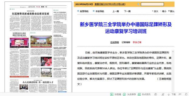5月31日至6月2日,由河南康复医学会主办,新乡医学院三全学院承办的中德国际足踝矫形及运动康复学习培训班在平原新区成功举办。