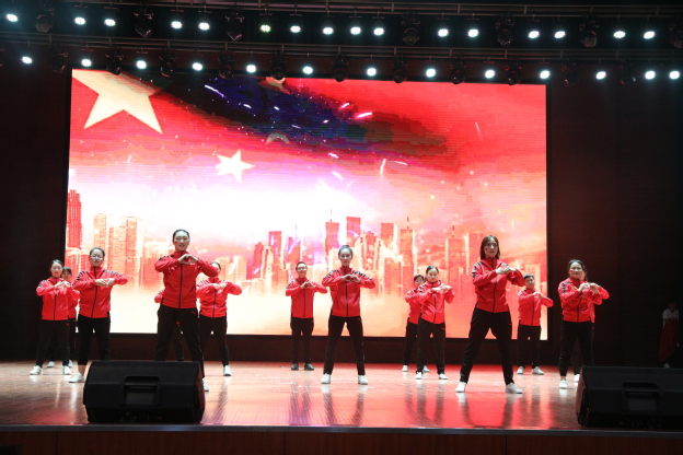 在决赛现场,广大教职工慷慨激昂,热情欢快。各参赛队伍的工间操表演,或激情洋溢,或可爱耍萌,队形整齐有序,寓意深刻,点燃了现场的阵阵掌声、欢呼声和呐喊声,展示了我校教职工阳光向上、青春活力的良好风貌。其中,德馨书院工会展现了新时代的内涵,充满活力的舞姿展现了朝气蓬勃的德馨教职工姿态;羲和书院工会力求创新,将历史中沉淀的优秀精神融入到舞姿中;精诚书院工会团结一心,齐心协力将恢弘的气势展示了出来;崇德书院工会将动静结合融入到工间操中,阴阳相济;护理学院工会用优雅的步伐迈出了一个个新的篇章;基础医学院工会热情饱满,脸上绽放了自信的笑容。在一支支工间操中,全场的观众回顾了建国70周年来的伟大成就,铭记历史,更加珍惜和谐社会、美好生活,展现出我校教职工不忘初心、牢记使命,积极向上的精神风貌。