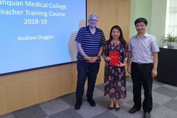 首先,Andrew与在座人员回忆了为期一年的双语师资培训课的点点滴滴,他用图片和音乐将大家一起拉回到培训课的现场。他表示,三全学院是一所有魔力的学校,感谢学校领导对于首期双语师资培训课的大力支持;很高兴与在座的教师一起成长,见证各位教师在英语教学上的进步。