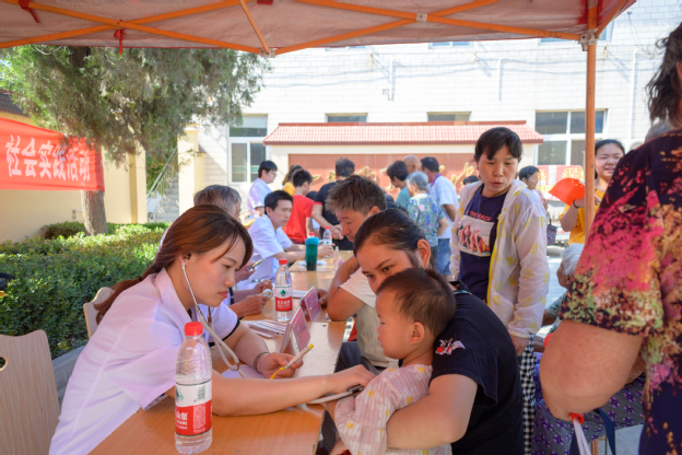 仪式结束后,医疗志愿服务团的专家们分成两组为村民进行义诊和乡村医疗技能培训。义诊活动现场,临床学院外聘专家、原新乡医学院三附院副院长严新志为主的专家们细心地为前来就诊的村民进行诊疗,详细解答村民提出的问题,并指导村民常见病、慢性病和多发病的预防方法和用药常识。专家团队还为村民讲解心肺复苏的方法,为村民和学生上了一堂急救知识现场演示课。同时,学生志愿者为村民量血压、测血糖、作心电图检查等。在卫生院二楼会议室,临床学院双师型教师、主治医师刘亚楠、谢静、姜全伟等,为乡村医生进行妇科炎症的检查与治疗、糖尿病等常见病的预防、食道癌的检查与预防等乡村常见病有关治疗的培训。大家聚精会神的一面听一面记,不是拿出手机照相,近两个小时的培训过程,没有一人离场。