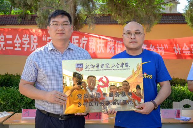 随后,邱永建和李一巍举行“党员志愿者服务基地和乡村医疗技能培训基地”挂牌仪式。