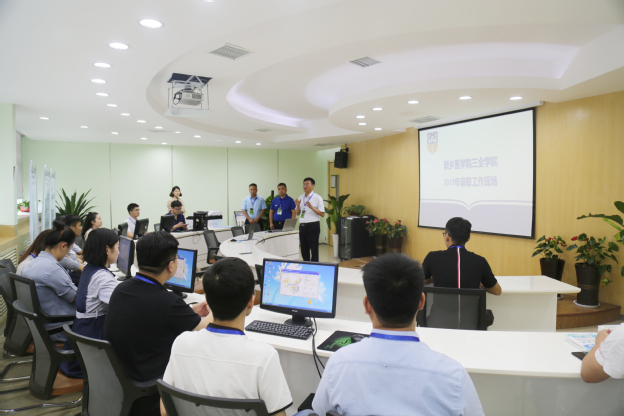 教务部主任袁磊汇报了我校2019年的生源计划、录取安排及当前招生录取工作进展情况。在前期筹备阶段,教务部根据河南省内、外各批次招生录取工作要求,制定招生录取工作方案,并召开招生录取工作部署专项会议。自7月8日至8月15日,历时40余天,共需完成17个省市各批次招生录取工作。
