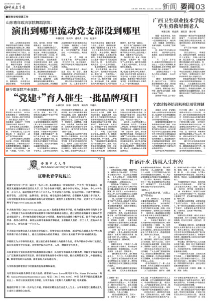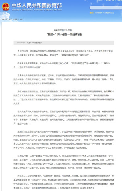 8月9日,《中国教育报》第3版显著位置专题报道我校“党建” 工作成绩,中华人民共和国教育部网站等媒体当日转载。