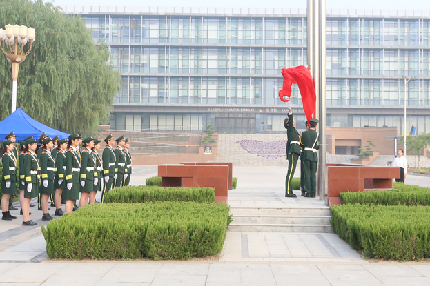 8月26日清晨,千余名师生迎着晨曦,在平原校区闻德广场举行2019-2020学年第一学期首次升旗仪式。我校党委副书记王金文、学务长邱永建出席,学务部及各书院负责人参加。