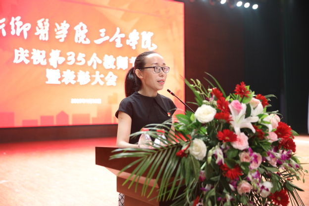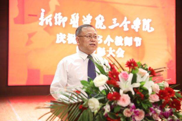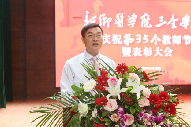 院长胡仕坤发表重要讲话。他对坚守在教学、管理、服务一线的老师表示节日的祝福,对受到表彰的老师表示热烈的祝贺。他说,全社会尊师重教的氛围越来越浓厚,学校在教师个人发展、工作生活条件等方面做了许多努力,产生了良好改变。对教师的职业发展,胡仕坤提出了四点意见:一是定位要清晰——我们的第一身份是“教师”。广大教师要珍爱教师的光荣称号,忠实履行教师的神圣职责,自觉地把个人发展同与时代的要求紧密联系在一起,做品学兼优的教师;二是认知要精准——我们的第一任务是“育人”。广大教师要不断创新教学理论、教学形式,更好激发学生的学习兴趣、实践能力和创造活力,培养出更多更优秀的学生;三是方向要正确——我们的第一追求是“治学”。希望广大教师树立终身学习理念,自觉克服浮躁功利,不断加强学术修养,提升学术境界和水平,攻下大课题,拿出大成果;四是志向要高远——我们的第一标准是 “师德”。 要提高政治站位,要忠诚党的教育事业,要培养高尚道德情操,要争做“有理想信念、有道德情操、有扎实学识、有仁爱之心”的 “四有”教师,为学校转型发展大计共同努力奋斗。最后,他希望每位教职员工都能珍惜教师身份,珍惜国家重托,实现个人与学校的共同成长。