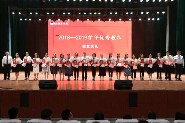 在雄壮威严的国歌中,表彰大会拉开了序幕。张钢宣读了获奖单位及个人名单。校领导为2018年目标完成先进单位、进步奖、创新项目奖、优秀教研室(实验室)、2019年暑期重点工作突出贡献奖等先进单位,2018年十佳人物及董事长特别奖、2018-2019学年优秀教师、建设贡献奖等先进个人颁奖,学生代表为2018-2019学年优秀教师献花。大会现场气氛热烈,掌声不断。