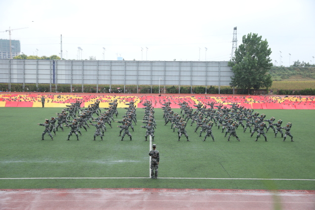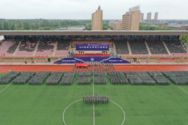 金秋送爽,丹桂飘香。在70周年国庆即将到来之际,我校2019级新生圆满完成各项军训任务,顺利结业。9月12日上午, 2019级新生军训汇报表演在平原校区风雨操场举行。新乡军分区党委常委、战备建设处处长王晓晖,我校教务长杜华贞、学务长邱永建出席,学校各书院、相关职能部门的负责人、全体承训教官、2019级全体新生及新生辅导员参加。仪式由学务部副主任、团委书记马素娟主持。