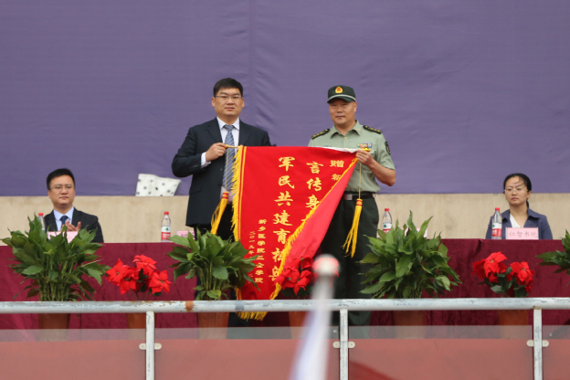 邱永建向新乡军分区赠送锦旗,对承训部队的各位教官和军训团各位工作人员在军训期间的辛勤付出表示诚挚感谢。“飒爽英姿展风采、铁骨雄心显军威”是对承训部队官兵的真实写照。