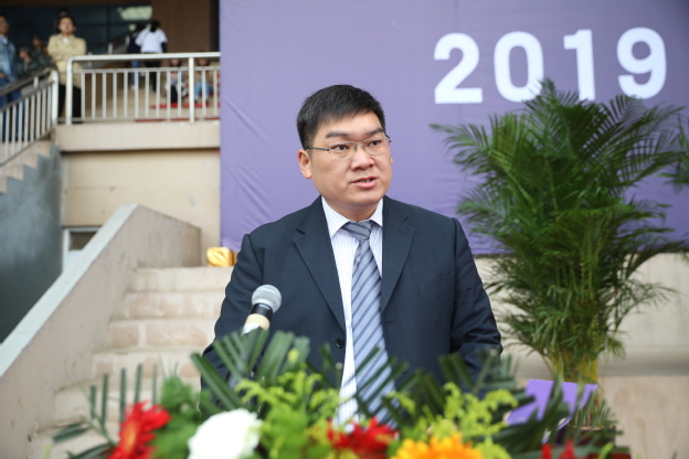 王晓晖代表承训部队对学校的全体领导和老师表示诚挚感谢,对2019级受训新生的进步感到欣慰,并对在场同学寄以期望。他希望同学们在今后的学习生活中,继续保持军训生活的好传统,刻苦勤奋,力争上游,团结奋进,勇往直前,实现属于自己的青春梦想!