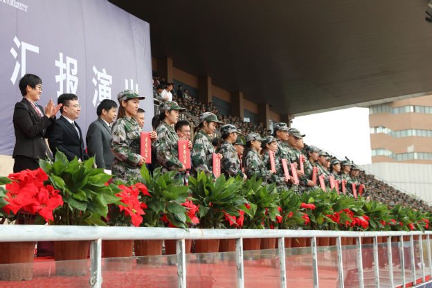 杜华贞宣读《关于表彰2019级新生军训先进集体和军训优秀学员的决定》,授予一营一连、一营四连等31个军训先进集体,刘春梦、郭晓辉等267名军训优秀学员称号。新乡军分区及学校领导为获奖的先进集体和个人代表颁发了荣誉证书。