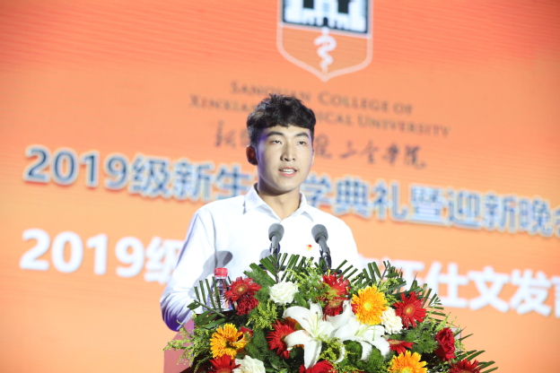 新生代表智行书院智能医学专业学生汪仕文发言。他代表全体新生表达了初入大学的欣喜和兴奋之情,并激励自己及全体同窗砥砺奋斗。汪仕文代表广大新生,庄严立定决心:在接下来的大学生活中,严于律己,培养高尚的道德情操;尊师敬长,团结同学;树立规范意识,深入学习本专业、本学科的知识;积极参加各类社会实践活动、志愿活动、创新创业活动、文体活动,努力将自己塑造成为一名高素质复合型人才。