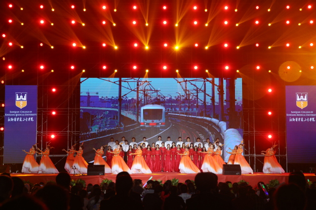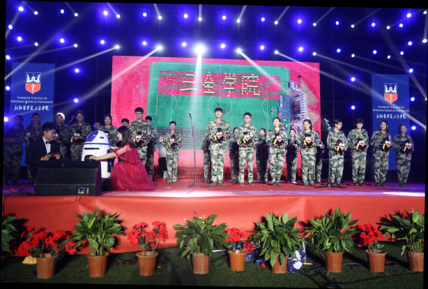 开学典礼后,学校形象宣传片《“全”世界欢迎你》带领2019级新同学,了解了我校的办学历程与发展成就。随后2019级新生军训MV—《勋章》,将全场推向至高点。影片以新生步入校园到开始军训,再到从军训中得到成长的经历为线索,展示了2019级新同学从盛夏到初秋,从日出到日暮,带上医者“勋章”,砥砺前行的美好形象。结尾新生军训汇演现场由千余名学生用红、黄色板块拼接成的“热烈庆祝祖国70周年”的定格画面,展示了同学们对祖国的美好祝福。随后,2019年迎新晚会璀璨上演。