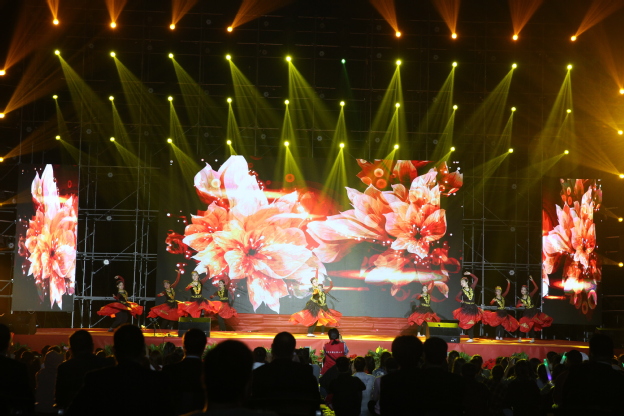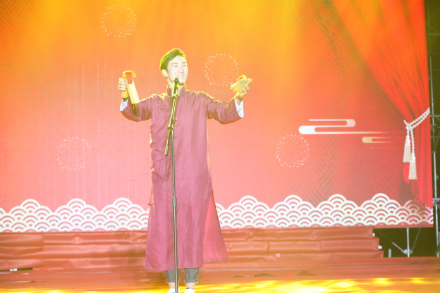 第二篇章——“我爱你,全世界”。舞蹈《幸福像花儿一样》温情演绎,舞台上下流动着无尽暖意,引得台下的观众轻声合唱;艺术团话剧队传统节目《从你的全世界路过》,展示了“全世界”多姿多彩的校园生活,鼓舞新生不忘初心、筑梦前行,用优异的成绩为新中国70华诞献礼;特别节目——《祖国,慈祥的母亲》主题生日礼,吉祥物“全全”、图书馆“图图”、2019级28名与共和国同一天生日的新同学共同朗诵《我和我的祖国》,会场流动的浓情感动让人泪湿眼眶,晚会气氛又一次达到高潮。