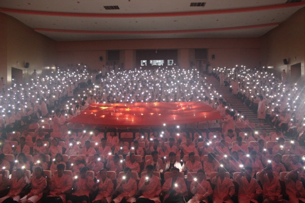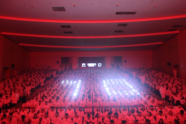 篇章一:千人舞灯海,星火映国旗。“我和我的祖国,一刻也不能分割......”随着悠扬的歌声响起,同学们用手机手电筒依次摆出“1949”、“2019”、“70”的字样,寓意从1949年中华人民共和国成立至今已经历70年风雨。随后,全场观众打开手电筒,一面国旗从观众席第一排缓缓展开,载着全院学子心中无限的敬仰与信念向后排传递。国旗在一个个小小的灯光中闪耀,正如“星星之火,可以燎原”,效果震撼、寓意深远。