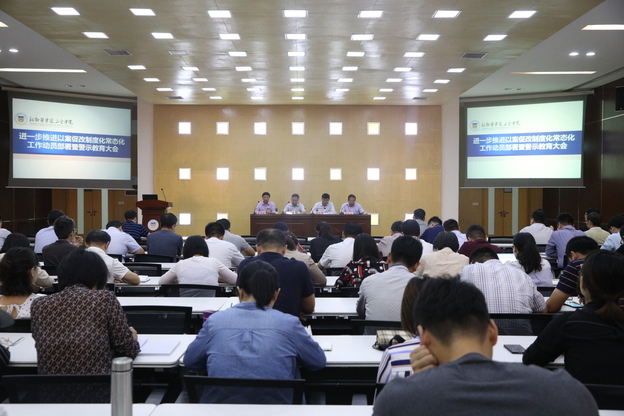 为深入贯彻落实《中共河南省委关于推进以案促改制度化常态化的意见》精神,按照省纪委《2019年以案促改工作要点》要求,进一步推动全面从严治党向纵深发展,开展警示教育,纯洁净化政治生态。9月28日上午,我校在行政楼三楼报告厅召开进一步推进以案促改制度化常态化工作动员布署暨警示教育大会,安排部署2019年以案促改工作。学校领导杨捷、胡仕坤、王志凯、石永立、马波、邱永建出席,各院(系、部)、书院、职能部门负责人,全体辅导员,基建部、总务部、后勤服务中心全体工作人员参加。会议由院长胡仕坤主持。