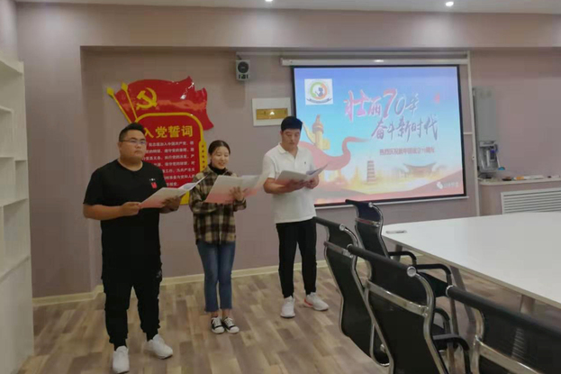 9月17日,健康管理学院党总支开展“春风化雨70年,砥砺奋进新时代”主题宣传教育实践活动之一个“主题”赞祖国之“传递梦想 传递爱 同心协力共筑健康中国”配乐朗诵活动。伴随着党总支书记贾臻的一首歌颂祖国母亲辉煌历程的《黄河赞歌》,朗诵活动拉开序幕,王耀峰的《不忘初心 继续前进》带着大家回忆了红军的坚强与韧性、革命的艰难与险阻,“从脚下的草鞋到火箭军的臂章,从背上的大刀到威武的航母”,让大家从肝肠寸断到雄心满满,从热泪盈眶到热血沸腾;陈东明、方媛、高滑的《健康行,中国梦》回顾了70年来我国在医疗卫生领域取得的伟大成就,让大家深切感受到“健康中国,你我同行”;杨静雅、樊文静、杨雅舒等结合医疗健康领域的重大成就、自身经历,诵读了原创作品和经典读物。最后,全体教师集体朗诵林格的《做有智慧的教育者》中的精选片段,激起了全体教师的坚定理想信念,坚定做好文明传承,提高奉献岗位的责任意识,聚“我为祖国做奉献”的奋进力量,同心协力建设健康中国。