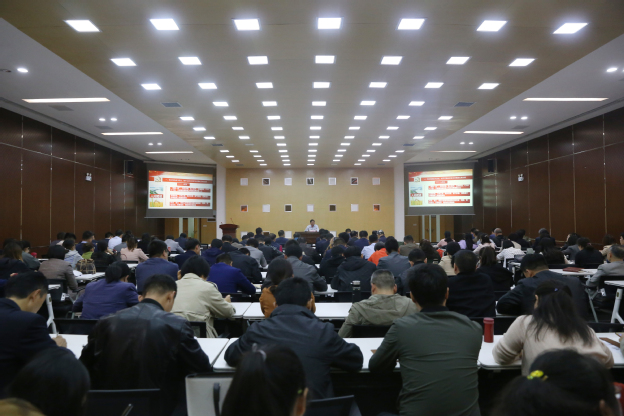 为进一步抓深抓实抓细“不忘初心、牢记使命”主题教育活动,根据学校主题教育工作安排,10月12日上午,我校院长、党委副书记胡仕坤在行政楼三楼报告厅以“不忘初心,牢记使命,扎实推进学校转型发展进程”为题,为我校党员干部讲授主题教育专题党课,全体校领导、中层管理人员、党支部书记共计150余人参加。专题党课由学校党委副书记张钢主持。
